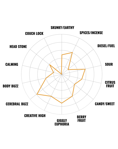 She’s no slouch though, with upwards of 24% THC, Tangie is a formidable force.