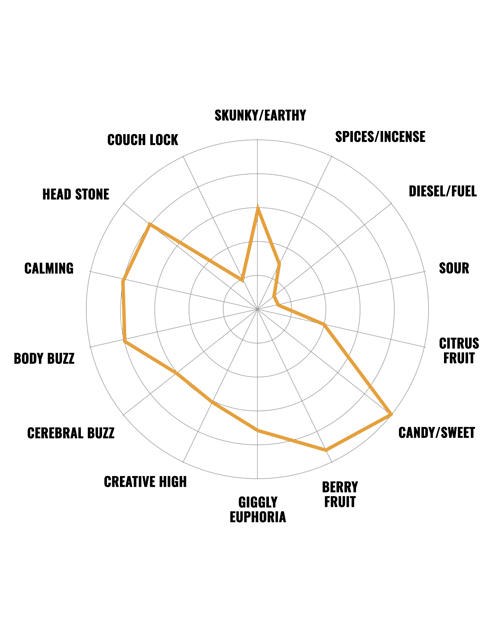 But of course, it’s the taste that really makes this strain the favorite of flavor specialists. Those looking for sweet and fruity tastes will find them all here. Those flavors range from different types of berries, cherries, guava, and even a hint of pineapple. On the back end, the taste of citrusy orange and lemon cuts through the sweet flavors to balance out the palette.