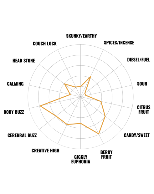 | Terpene | Myrcene, Caryophyllene, Pinene |