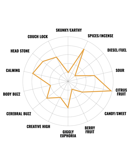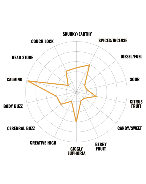 | Terpene | Myrcene, Alpha-Pinene, Beta-Caryophyllene, Limonene |